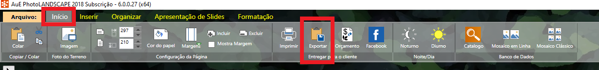 Clique na Aba Inicio(está na Barra de Menus do PhotoLANDSCAPE).