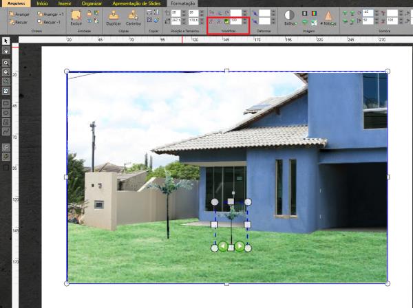 2º Passo – Vou inserir uma vegetação e colocar em frente da esquadria para ser refletida. Faço uma copia dessa vegetação, diminuo a escala, e vou inserir nessa esquadria e alterar a transparência.