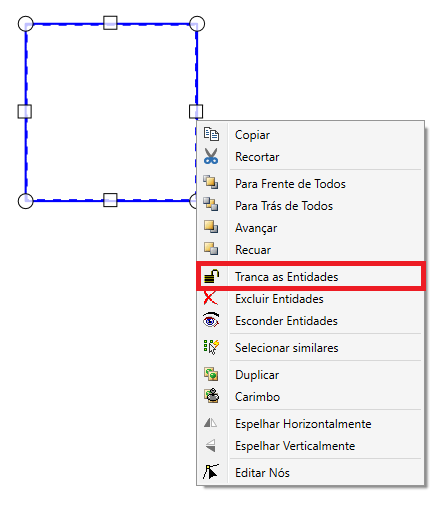 Primeira Forma: Clicando com o botão direito do mouse sobre uma entidade selecionada escolher a opção Trancar entidade.