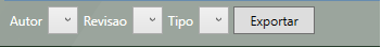 Possui um filtro na parte inferior da tela por Autor, Revisão(Avaliação) e tipo, e também um botão Exportar.