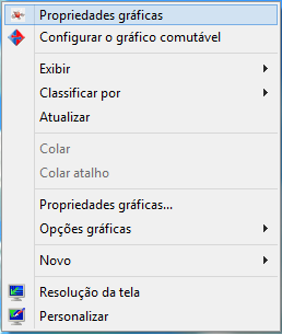 1º Passo – Clique com o botão direito do mouse em um espaço na sua área de trabalho e selecione Propriedades gráficas ou pressione a tecla Windows no seu teclado e em seguida digite Catalyst Control Center.