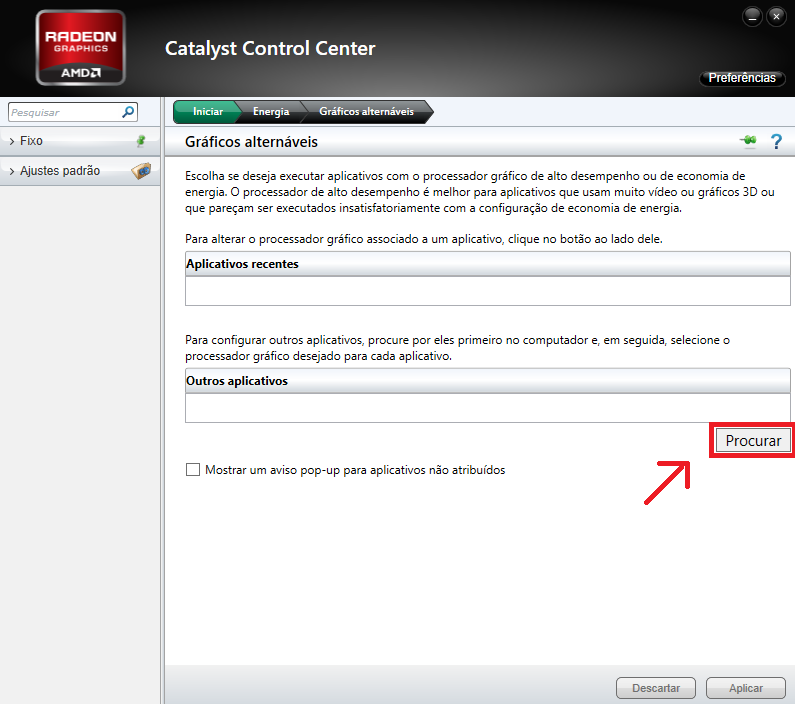 3º Passo – Agora vamos selecionar os aplicativos que desejamos customizar junto ao Catalyst. Selecione a opção Procurar em Outros Aplicativos, na parte inferior da tela do Catalyst para buscar.