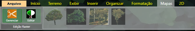 A aba Mapas aparece quando o item selecionado apresenta mais de um mapa que pode ser inserido no projeto. Nessa aba temos a opção de selecionar outros mapas, onde você pode escolher o que mais se adequar ao seu projeto, editar o mapa escolhido desse item e ainda gerenciar o mapa, onde poderá inserir mapas novos ou excluir os que já existem, além de alterar algumas características do mapa.