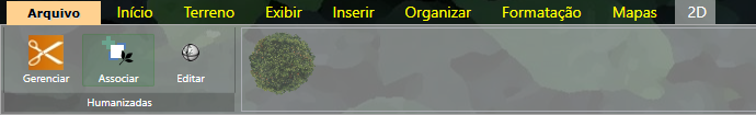 A aba 2D aparece quando o item selecionado possui também uma forma humanizada, como as plantas possuem. Nessa aba temos como gerenciar a forma humanizada, ou seja, inserir humanizadas novas ou excluir as que já existem, além de alterar algumas características da humanizada. Além de associar a humanizada selecionada a um item que conste no seu projeto, e editar a humanizada selecionada para fazer pequenas alterações que serão refletidas somente no item selecionado, e não nela em geral.