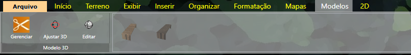 A aba Modelos aparece quando o item selecionado possui também um modelo 3D, como os mobiliários possuem. Nessa aba temos como gerenciar o modelo, ou seja, inserir modelos novos ou excluir os que já existem, além de alterar algumas características do modelo. Também podemos ajustar o 3D para que sempre venha por padrão numa posição específica, editar o modelo selecionado para fazer pequenas alterações que serão refletidas somente no item selecionado, e não no modelo em geral, além de escolhermos qual modelo queremos usar, caso as opções que aparecerem sejam ideais.