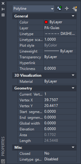 Para descobrir se a linha é do tipo SPLINE ou PolyLine, basta clicar com botão direito na linha e ir em Properties, visualizando assim o tipo do objeto, como mostrado na figura abaixo: