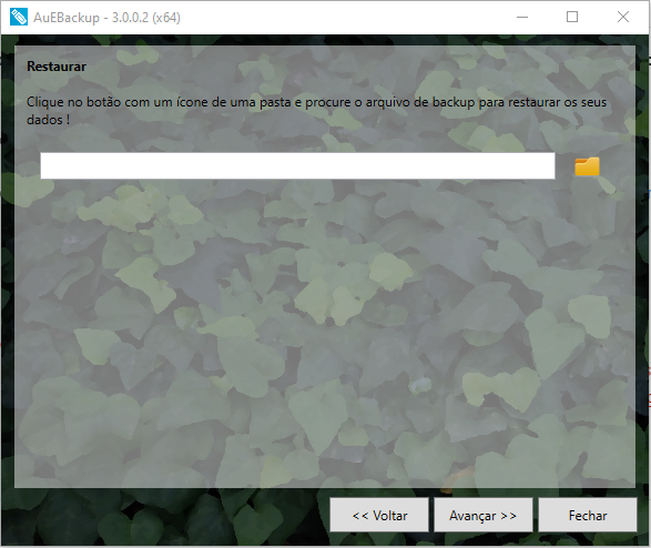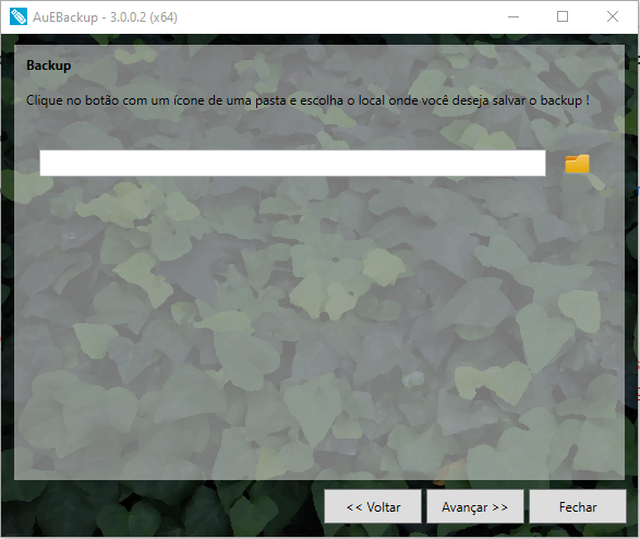 Após escolher uma das opções, clique em Avançar e selecione a pasta para realizar o Backup ou Restaurar.