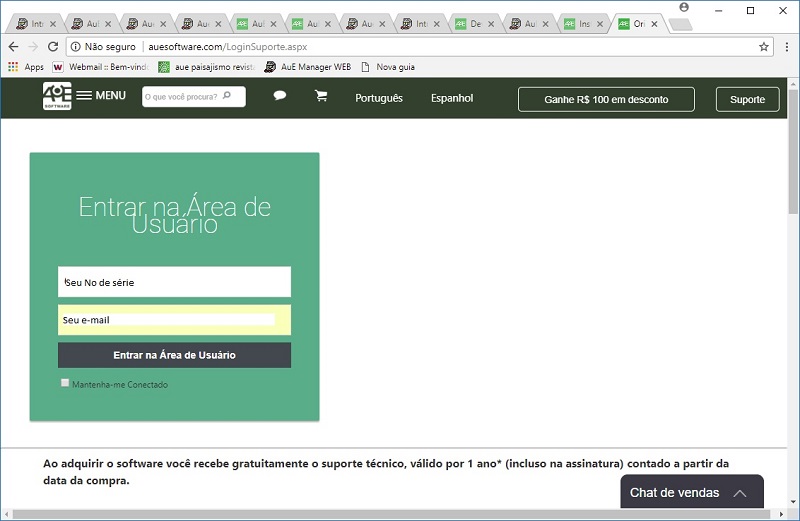 1º Passo – Acesse a área do usuário no site auesoftware.com