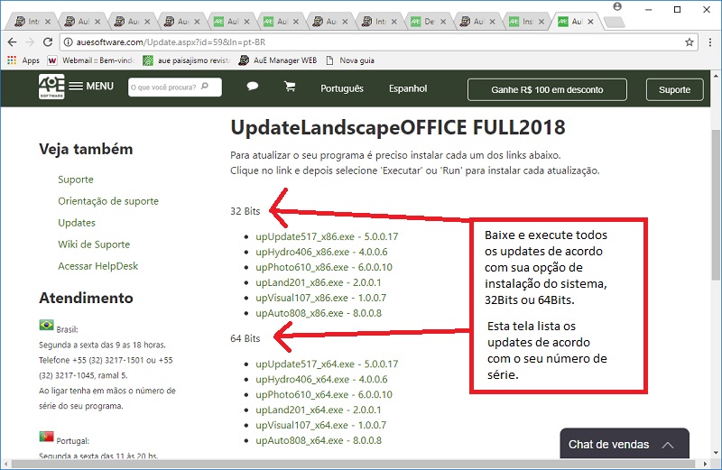 Eventualmente pode ser necessário atualizar o software manualmente pelo site da AuE Software, baixando as atualizações e executando-as em seu computador. Lembrando que existe UPDATE e UPGRADE, este procedimento é voltado para realizar UPDATES dos programas da AuE.