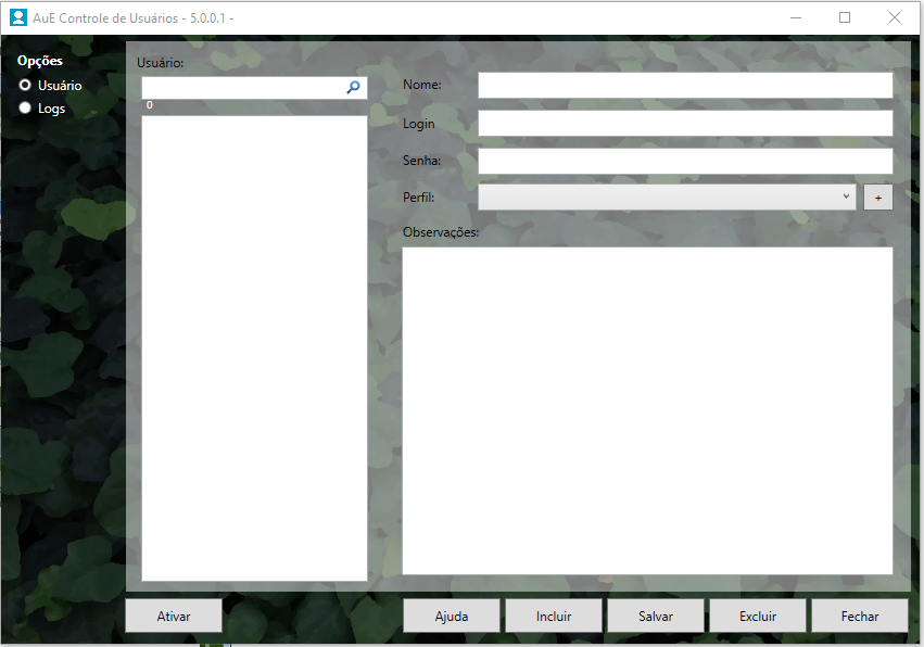 Em Opções, a aba Usuários exibe todos os cadastrados e permite a alteração dos dados. É através desta opção que você pode fazer a inclusão de novos usuários.