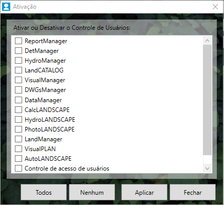 Ativa ou desativa o controle de usuários, dando permissões através das opções de softwares exibidos. Basta marcar as opções desejadas para determinada categoria de usuário e clicar em aplicar.