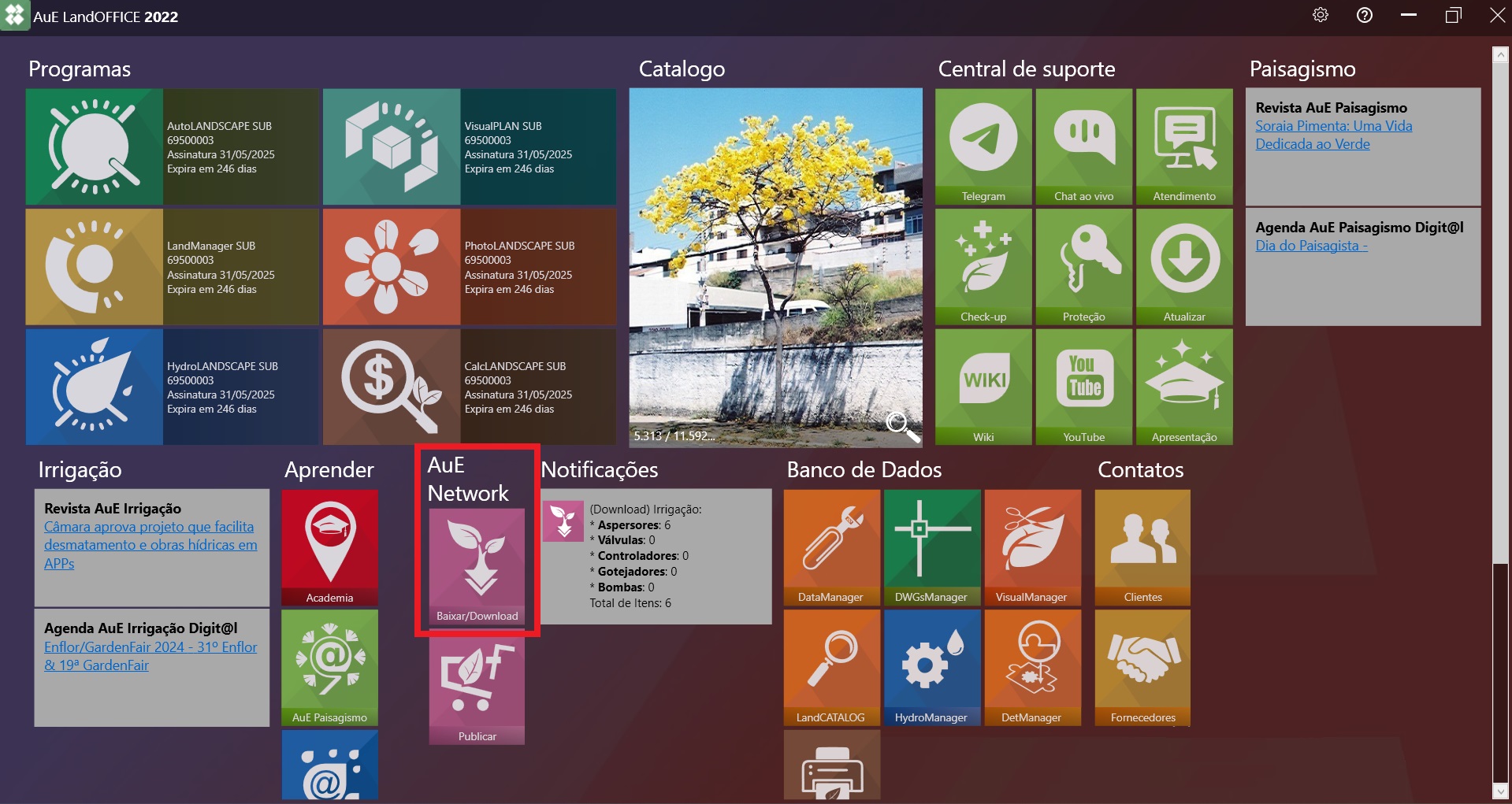 Ao abrir o sistema AuE LandOFFICE 2022, você encontrará a opção "Banco de Dados" e dentro dela o AuE Network.