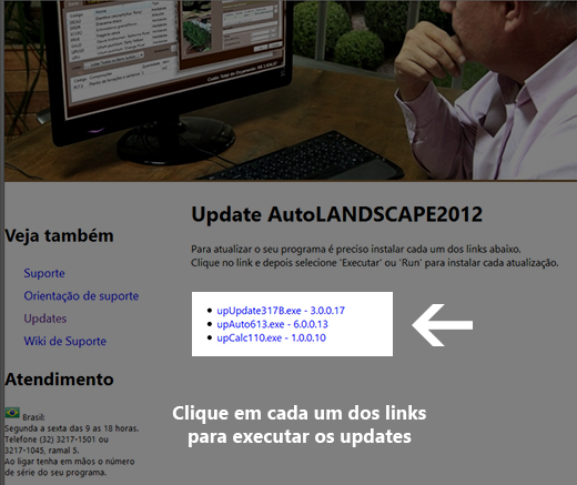 4º Passo – Para atualizar seu software pelo site da AuE, basta entrar em www.auesoftware.com, realizar o login no site com o número de série de seu software e o e-mail cadastrado no ato da compra. Depois procurar os links dos Updates e baixar e executar cada um que estiver disponível, como na imagem abaixo: