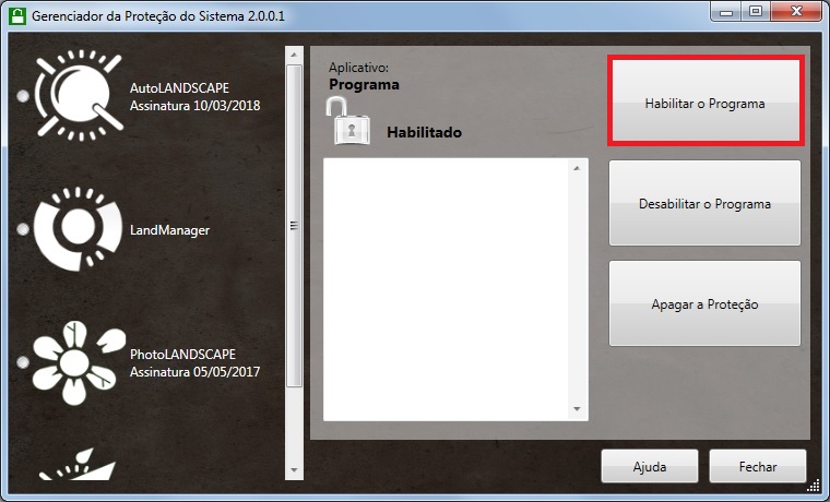 4º Passo – Abrir o Gerenciador da Proteção do Sistema novamente, e selecionar, dessa vez, Habilitar o Programa.