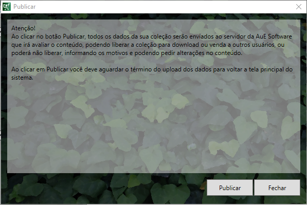 Por fim deve-se clicar em "Publicar" na aba "Coleção" e aguardar o upload de seus arquivos para o servidor da AuE. Lembrando que após a publicação não será possível fazer alterações nas coleções disponibilizadas.