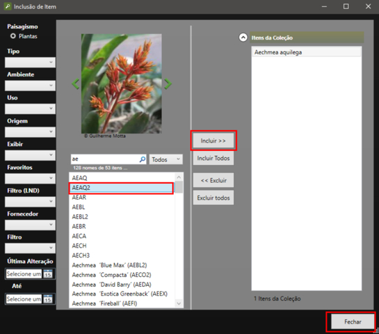 No filtro de buscas da lateral esquerda deve-se selecionar o item desejado e em seguida clicar em "Incluir". Feito isso a foto do item aparecerá dentro de sua coleção.
