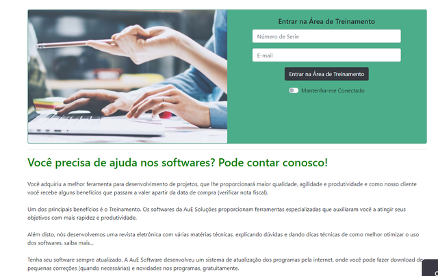 A AuE Software oferece a todos os seus clientes que adquirem os programas, cursos rápidos sobre todos os programas. É um brinde que a empresa oferece. Além dos cursos ofertados, há as aulas introdutórias (pagas) ministradas por um instrutor da AuE treinado e capacitado para retirar todas as suas dúvidas e ensiná-lo a manusear os softwares adquiridos.