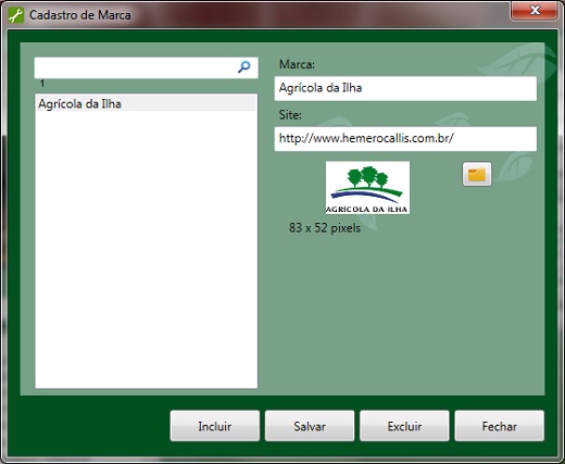 Você deve preencher os campos de acordo com a marca, digitando o nome da marca e o site caso exista, também é possível cadastrar a imagem da logomarca.