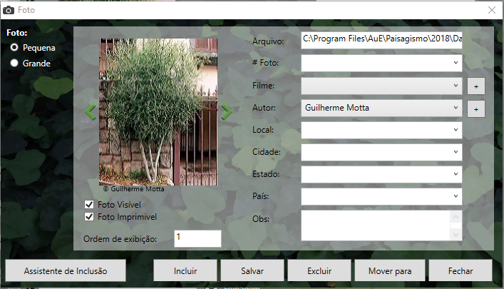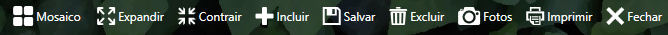 Nesta barra estão os botões de comando para Incluir, Salvar, Excluir, Expandir, Contrair, Mosaico, Imprimir, Fotos e Fechar.