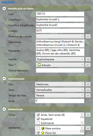 Você pode buscar um item digitando o seu nome, código ou nome popular (no caso de plantas), será listado apenas os itens que se encaixarem na busca.