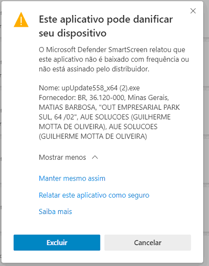 Ao baixar o AuESetupWeb2018, o Windows Defender Smart Screen, presente no Sistema Operacional Windows, pode bloquear o download. Para realizar a desativação, siga o tutorial abaixo: