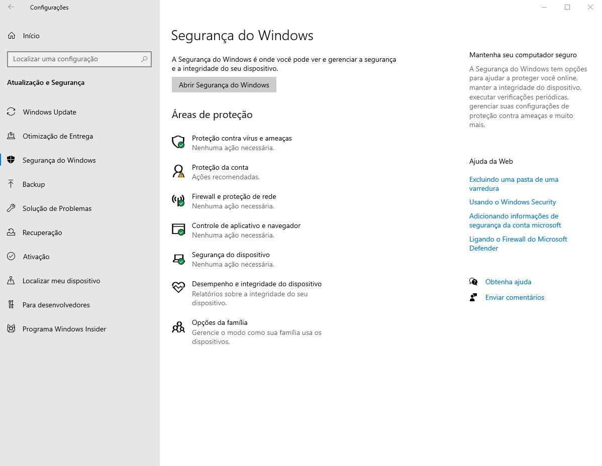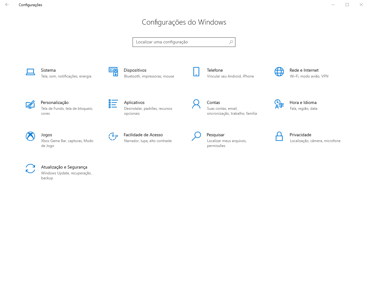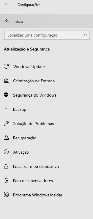 1º Passo – Vá no Menu Iniciar, Configurações, Atualização e Segurança.