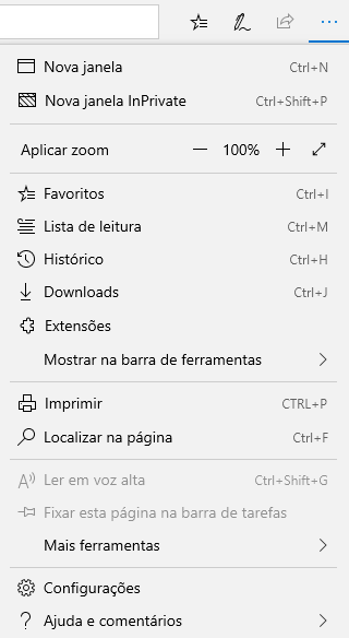 1º Passo – Abra o navegador e clique nos 3 pontinhos no lado direito da tela.