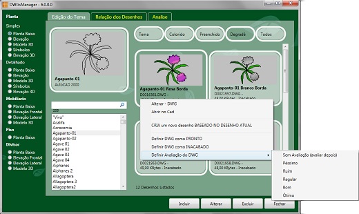 Na aba Edição do Tema é possível fazer todo o controle dos desenhos cadastrados.