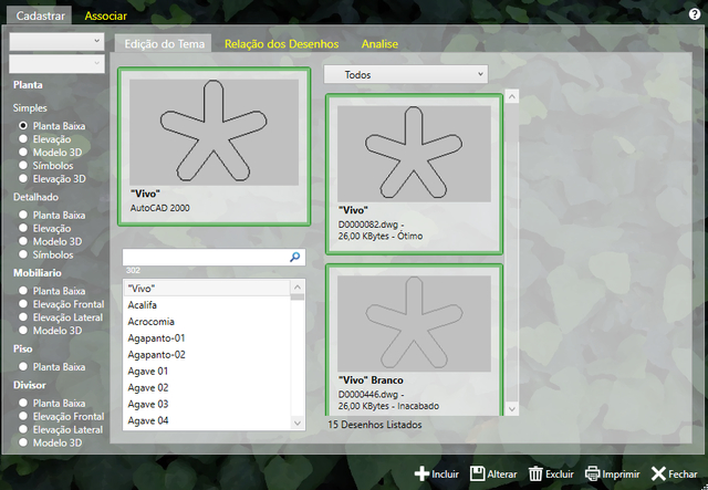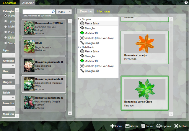 Nesta janela é possível associar os itens de Paisagismo aos Desenhos.