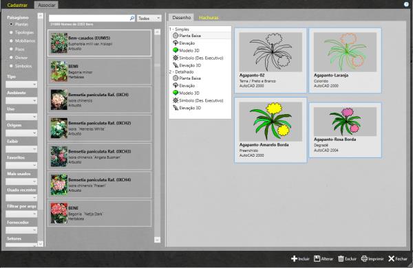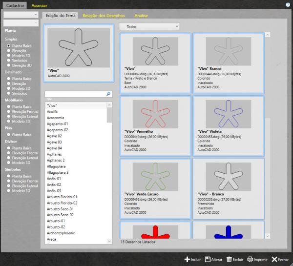 Nesta janela é possível associar os itens de Paisagismo aos Desenhos.