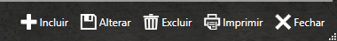 Nesta barra estão os botões de comando para Incluir, Alterar, Excluir, Imprimir e Fechar.