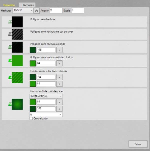 Nesta aba é possível alterar a cor, o ângulo e a escala do desenho.