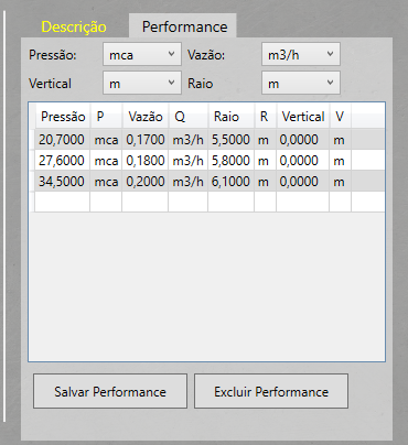 5º Passo – Logo em seguida, devemos clicar na aba performance e preencher os dados como no catálogo do produto. Fique atento a um detalhe: Existem dois botões para salvar aqui nesta tela, o salvamento da performance e o salvamento do bocal. Tome cuidado, pois cada um destes botões irá salvar de forma diferente. Depois de cadastrar os bocais, devemos associá-los ao corpo do aspersor. Perceba que ao lado direito da caixa de bocais existem dois botões, um com o símbolo (+) e o outro com o símbolo (-).
