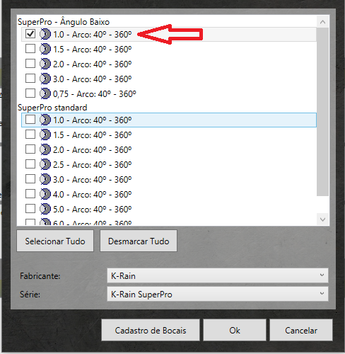 Pronto! Desta forma você poderá fazer o cadastro de novos aspersores já associando os bocais para ele.