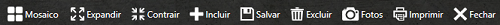 Nesta barra estão os botões de comando para Incluir, Salvar, Excluir, Expandir, Contrair, Fotos, Imprimir e Fechar.