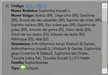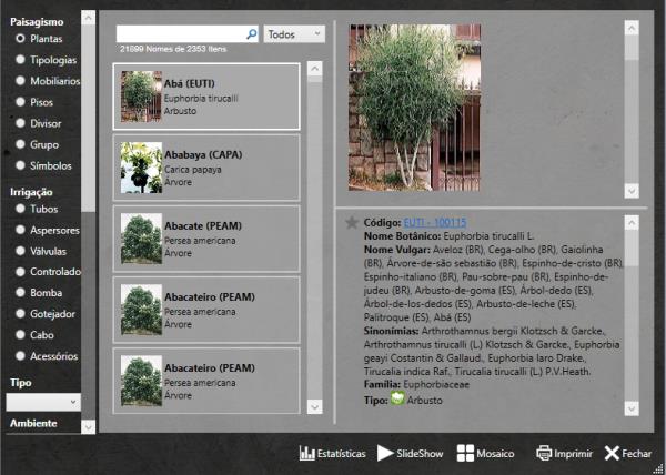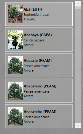 Você pode buscar um item digitando o seu nome, código ou nome popular (no caso de plantas), será listado apenas os itens que se encaixarem na busca.