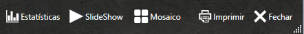 Nesta barra estão os botões de comando para visualizar a apresentação do SlideShow, Mosaico, Imprimir, Estatísticas e Fechar.