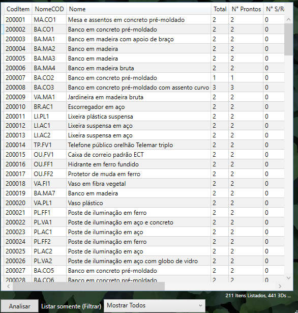 Nesta lista estão todos os itens com sua quantidade total de 3Ds, quantidade de 3Ds prontos, sem revisão e as avaliações dos 3Ds.
