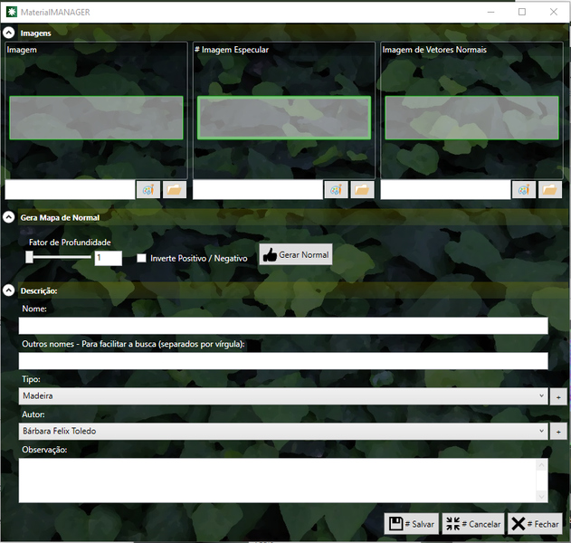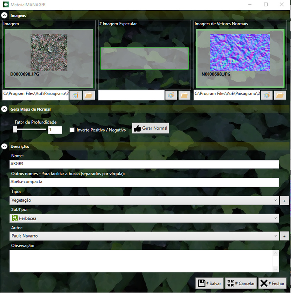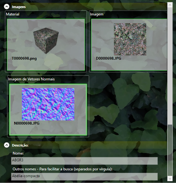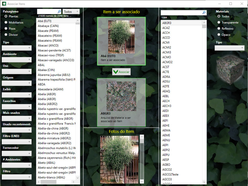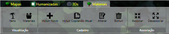 Nesta aba o usuário terá todo o controle sobre a edição dos Materiais, com um clique do mouse sobre um dos Materiais é exibido um menu com uma lista de opções para edição do Material: