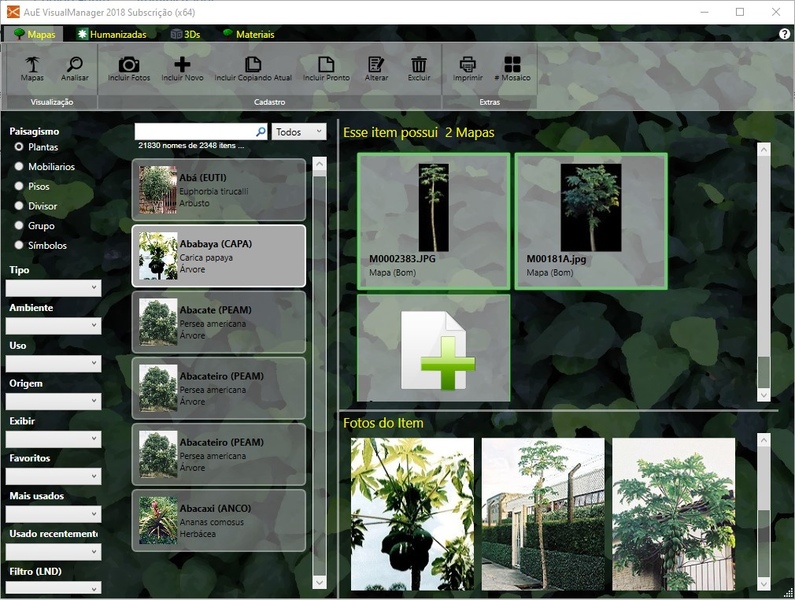 Você pode buscar um item digitando o seu nome, código ou nome popular (no caso de plantas), será listado apenas os itens que se encaixarem na busca.