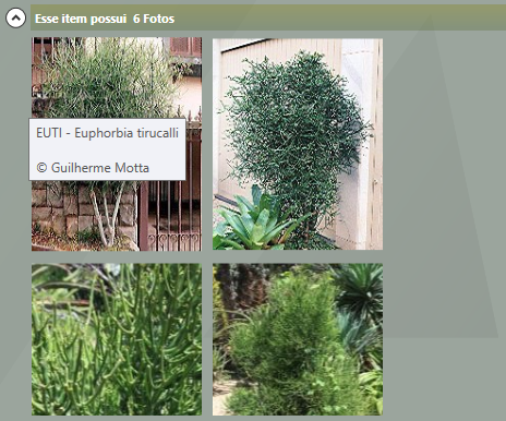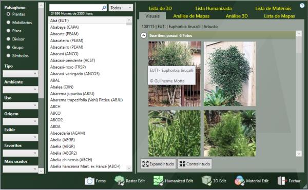Você pode buscar um item digitando o seu nome, código ou nome popular (no caso de plantas), será listado apenas os itens que se encaixarem na busca.