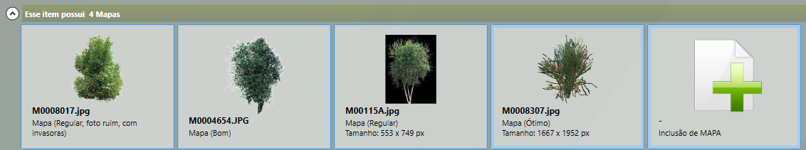 Nesta lista estão todos os mapas do item, mapas recortados e os que ainda não foram recortados.