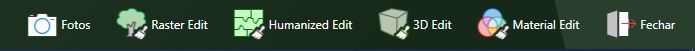 Nesta barra estão os botões de comando para Fotos, Raster Edit, Humanized Edit, 3D Edit, Material Edit e Fechar.
