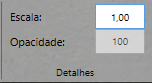O controle da Escala indica a escala no qual o mapa será apresentado, com 1,00 marcado como padrão (1/100).