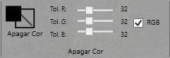 Agora, as barras de Tolerância de Cor controlam a escala RGB(Red, Green, Blue(Vermelho, Verde e Azul)) do item selecionado. A checkBox RGB ao lado ao estar marcada ira mostrar múltiplas cores de acordo com as barras de Tolerância de Cor. Desmarcada, irá mostrar uma cor só.