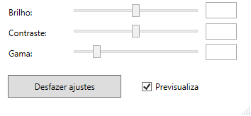 A função Brilho irá liberar um controle de brilho, contraste e gama, com a opção de desfazer os ajustes feitos e uma checkbox de pré-visualização dos ajustes feitos.